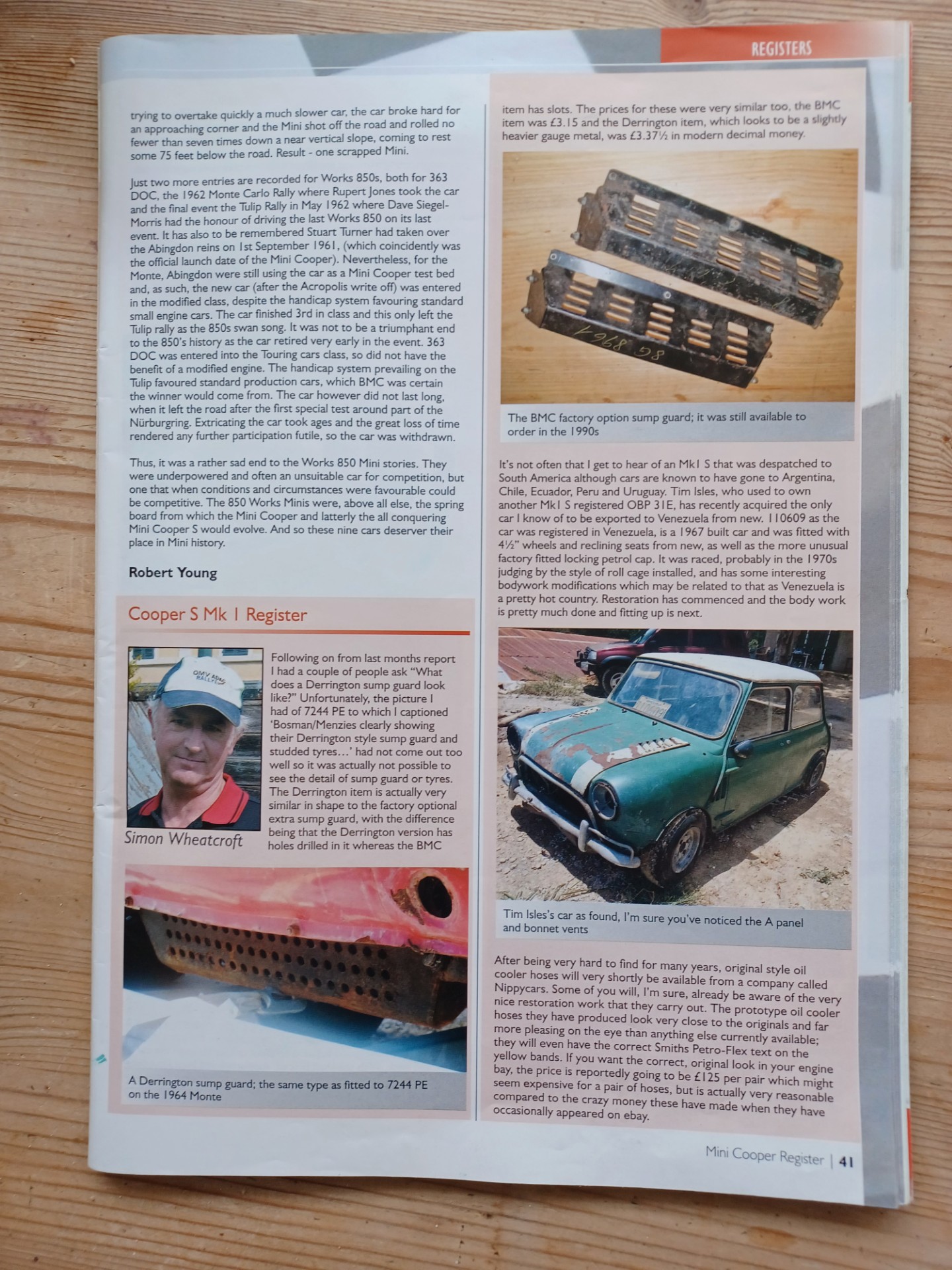 Listed on the Mini Copper S Registrar. Additionally the BMC Heritage Certificate is on file, showing it was exported to Venezuela with adjustable seat backs, twin tanks, sump guard, heater and Minilites. (The original Minilites are included but being period magnesium they are fit only for garage art).